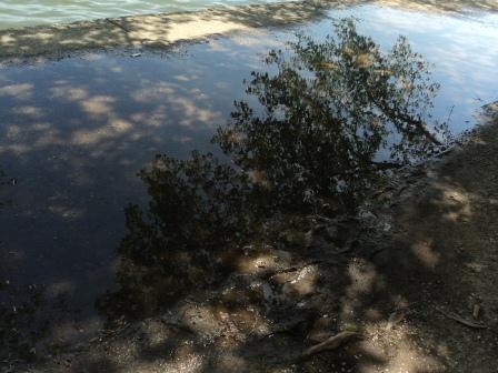| In case this small image isn't really clear, this is a reflection in a mud puddle. I found the puddles irritating as we walked around them. I love that a student saw them differently. |